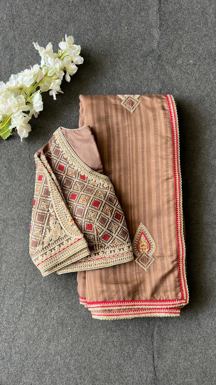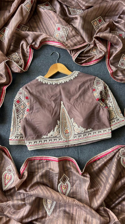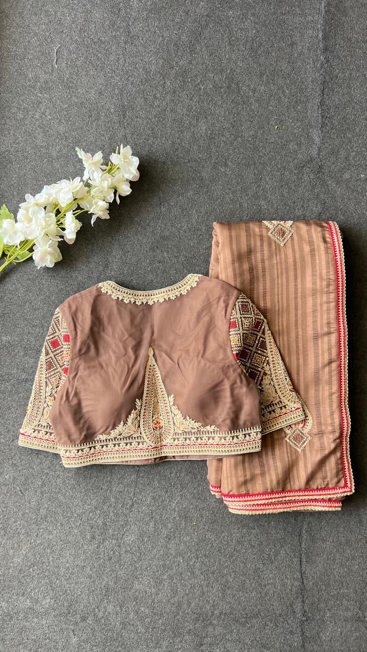 Caramel muslin silk embroidery saree with blouse