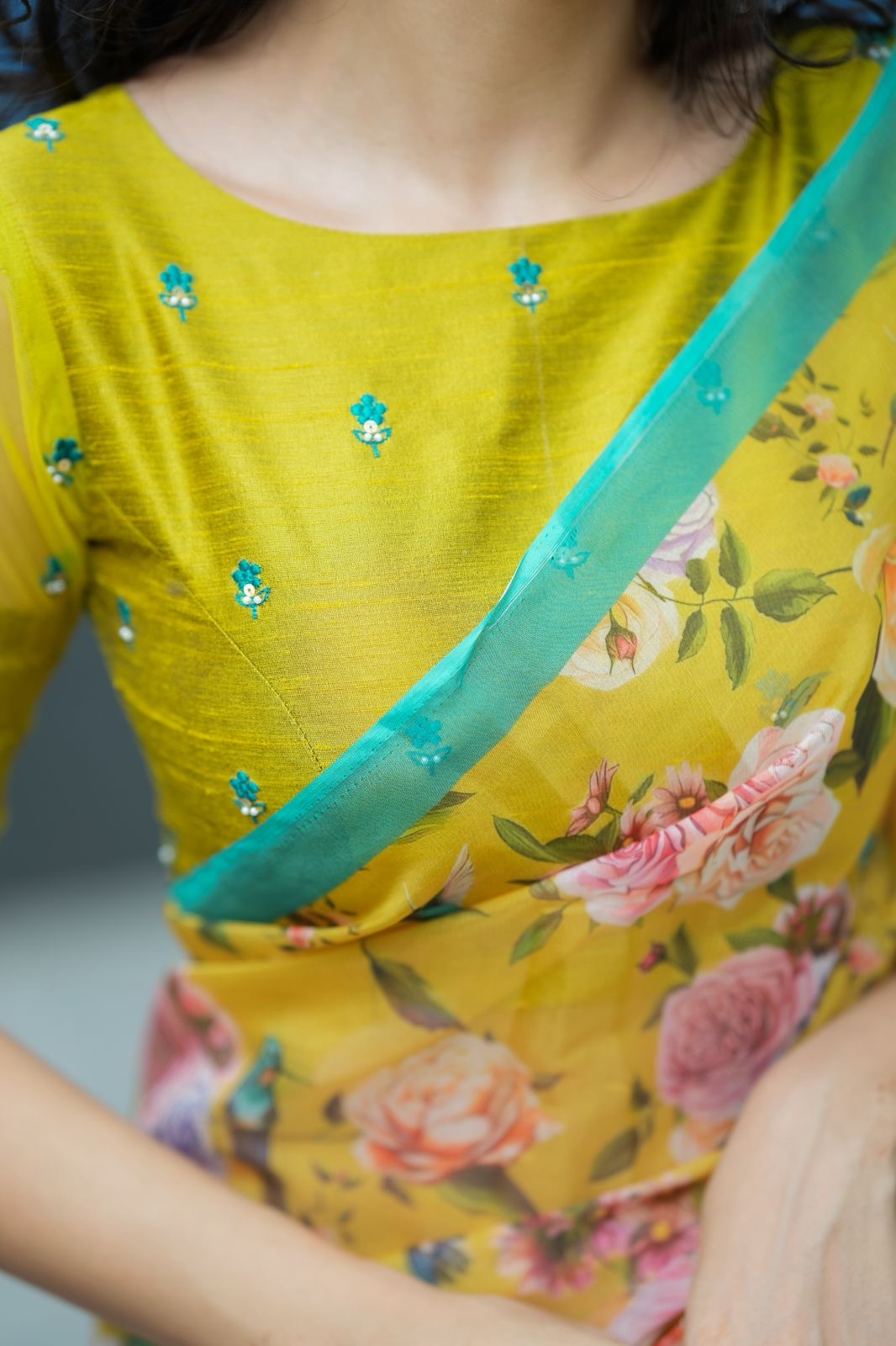 Lime green floral hand worked blouse (only blouse)