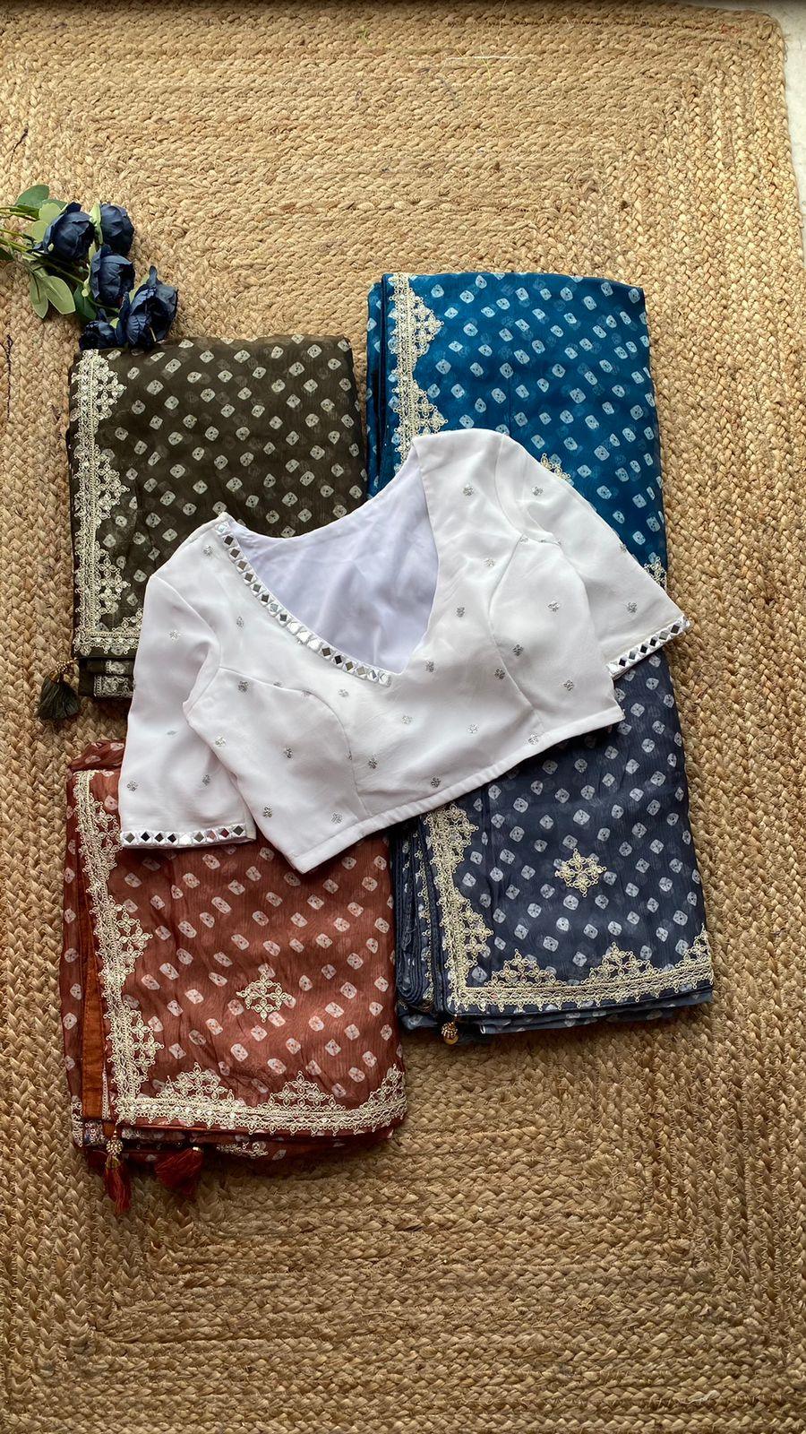 * Blouse piece of 1--1.2m length having above hand embroidery & mirror works as shown will be provided