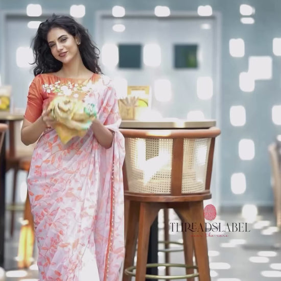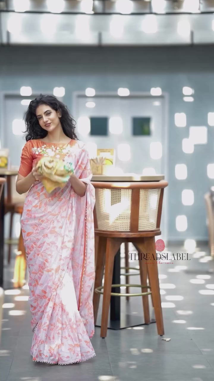 * Works : Floral print works all over the saree and pearl embroidery works for border