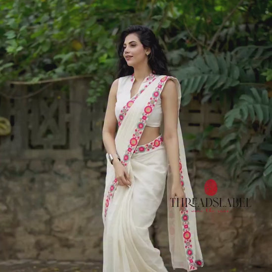 Cream cotton kota saree with embroidery work blouse
