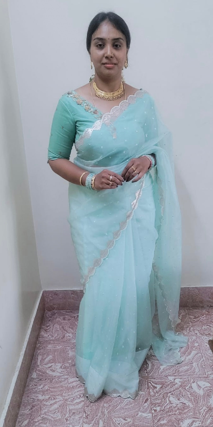 Cyan blue handmade Blouse (only blouse)