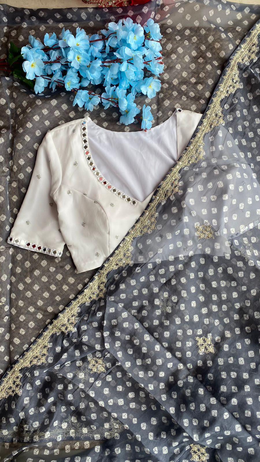 Grey Organza saree with heavy embroidery blouse