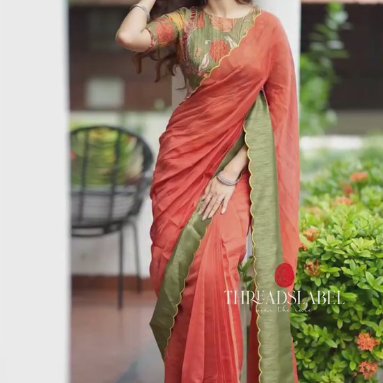 * Works : Liquid patti border works & kalamkari cut work pallu