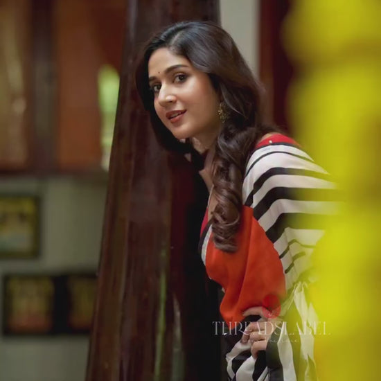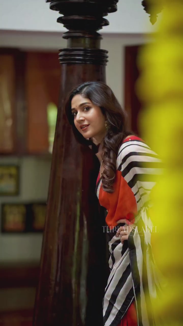 Black & white stripped kossa designer saree