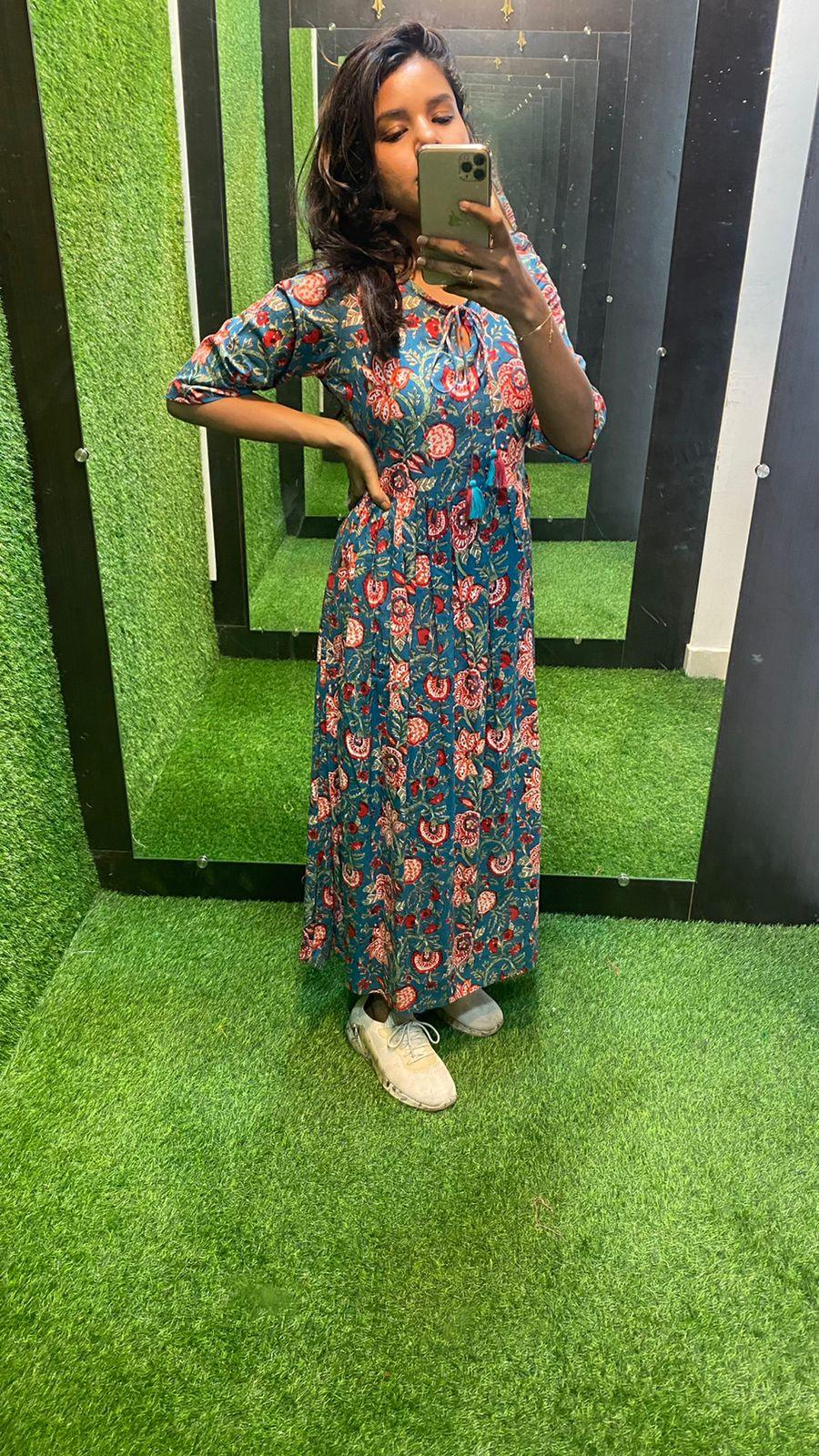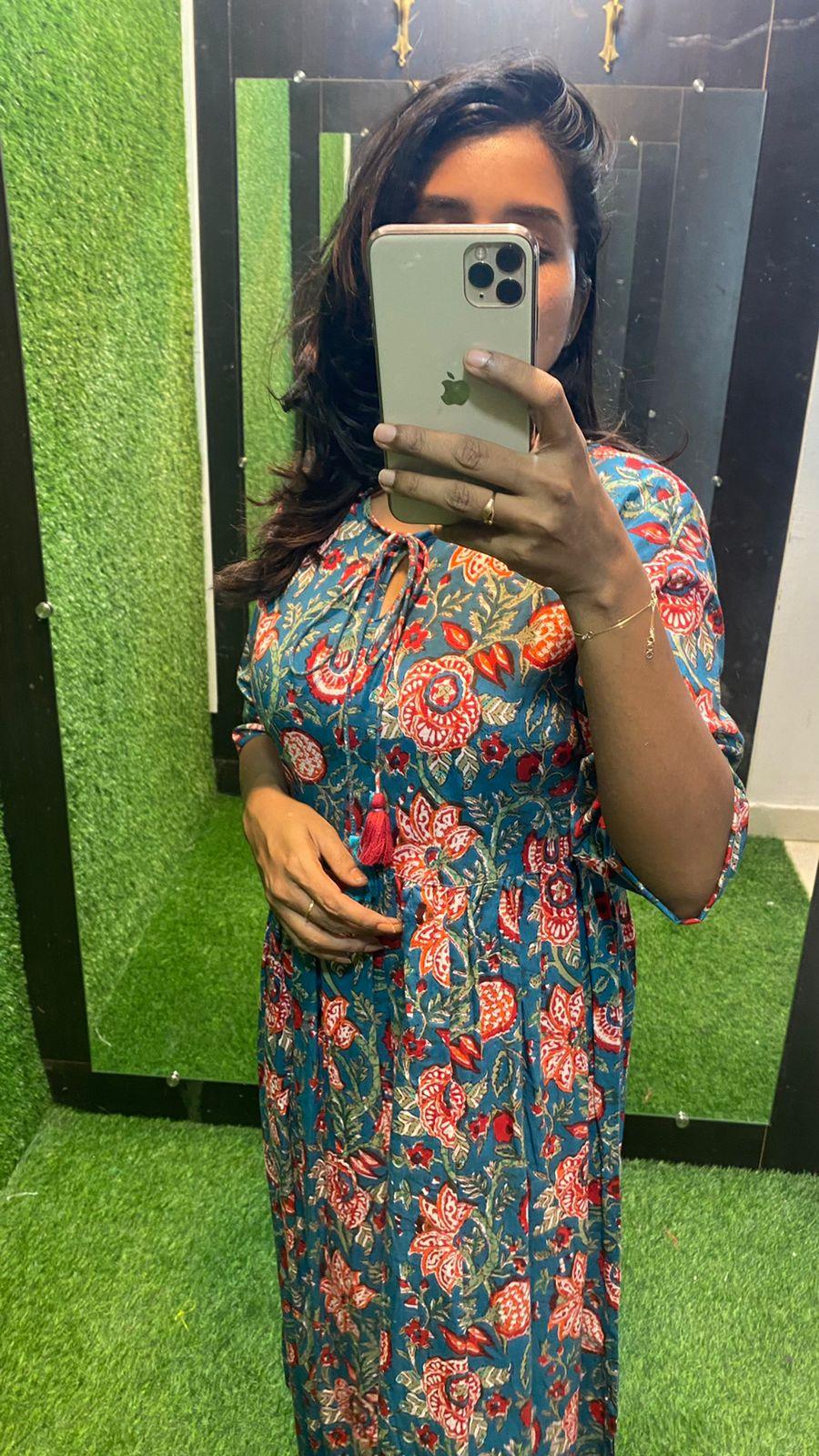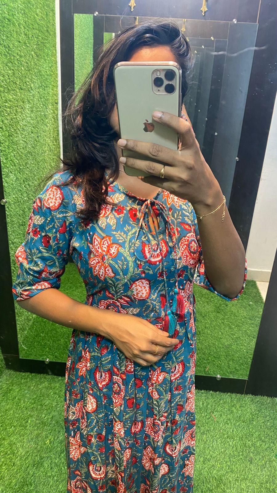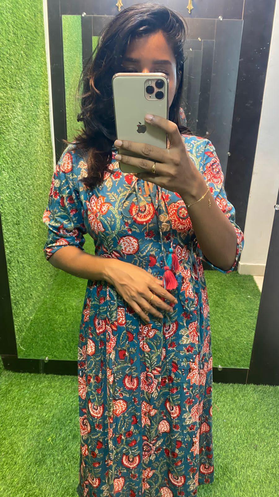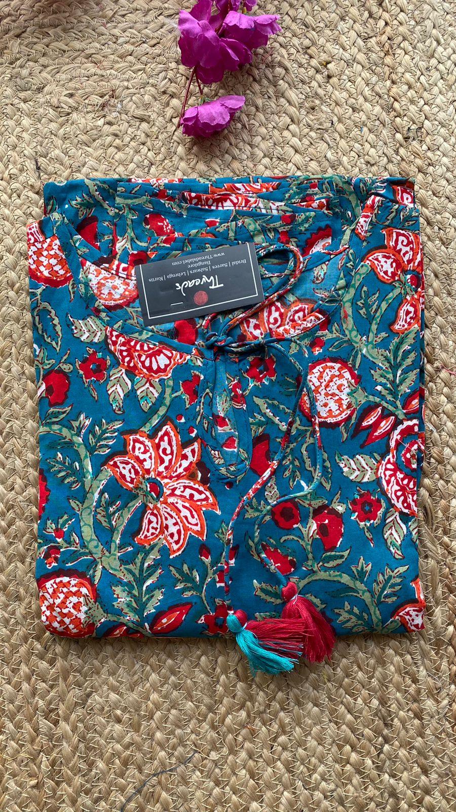 Pure cotton Blue and red kurti top comes with digital prints all over kurti.