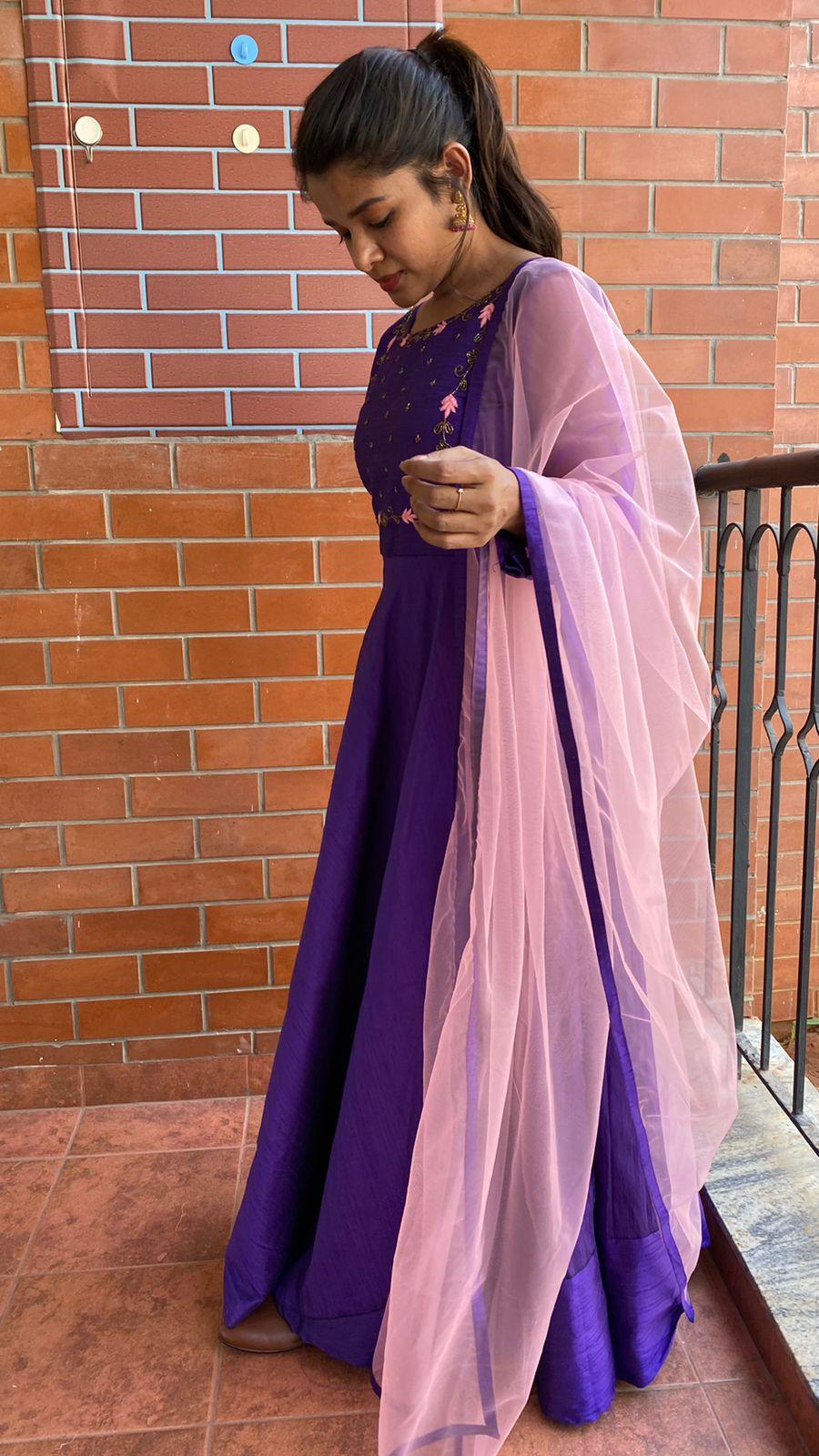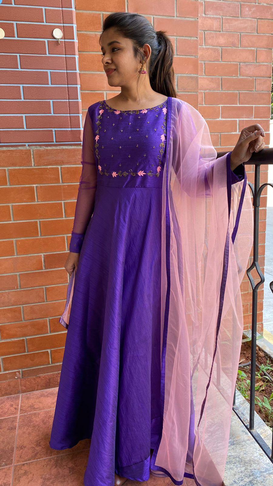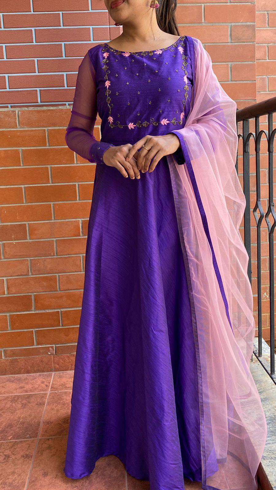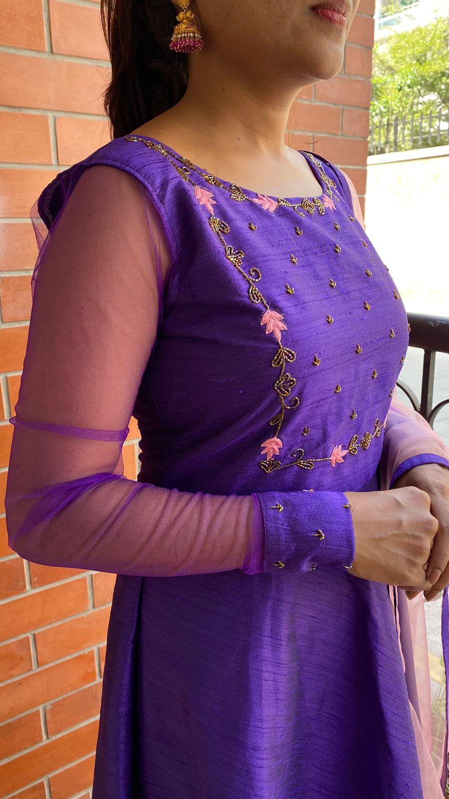 Purple silk salwar suit that comes with Full hand worked top and sleeve work with pleated full length salwar and a matching pink Duppata ...!!